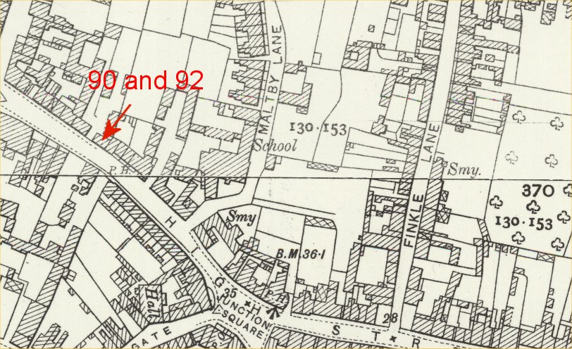 Grade II. Early 19th Century. Two storeys in brick with new roof, and brick eaves cornice. Three windows, flush cases, hung sashes with glazing bars. Two similar windows to ground floor. Shop front with plain pilasters to left. Doorway with plain pilasters, cornice and entablature. Door of four panels, rectangular fanlight.