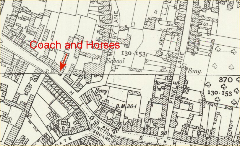 Grade II. 18th Century origins. Two storeys, now rendered, with pantile roof. Plinth. Brackets to wood eaves cornice. Rusticated quoins. Three windows, rusticated lintels, hung sashes with glazing bars, wood cases. Ground floor has two modern rectangular windows in rusticated surrounds with keystones. Window rustication, and that to door, is not original.